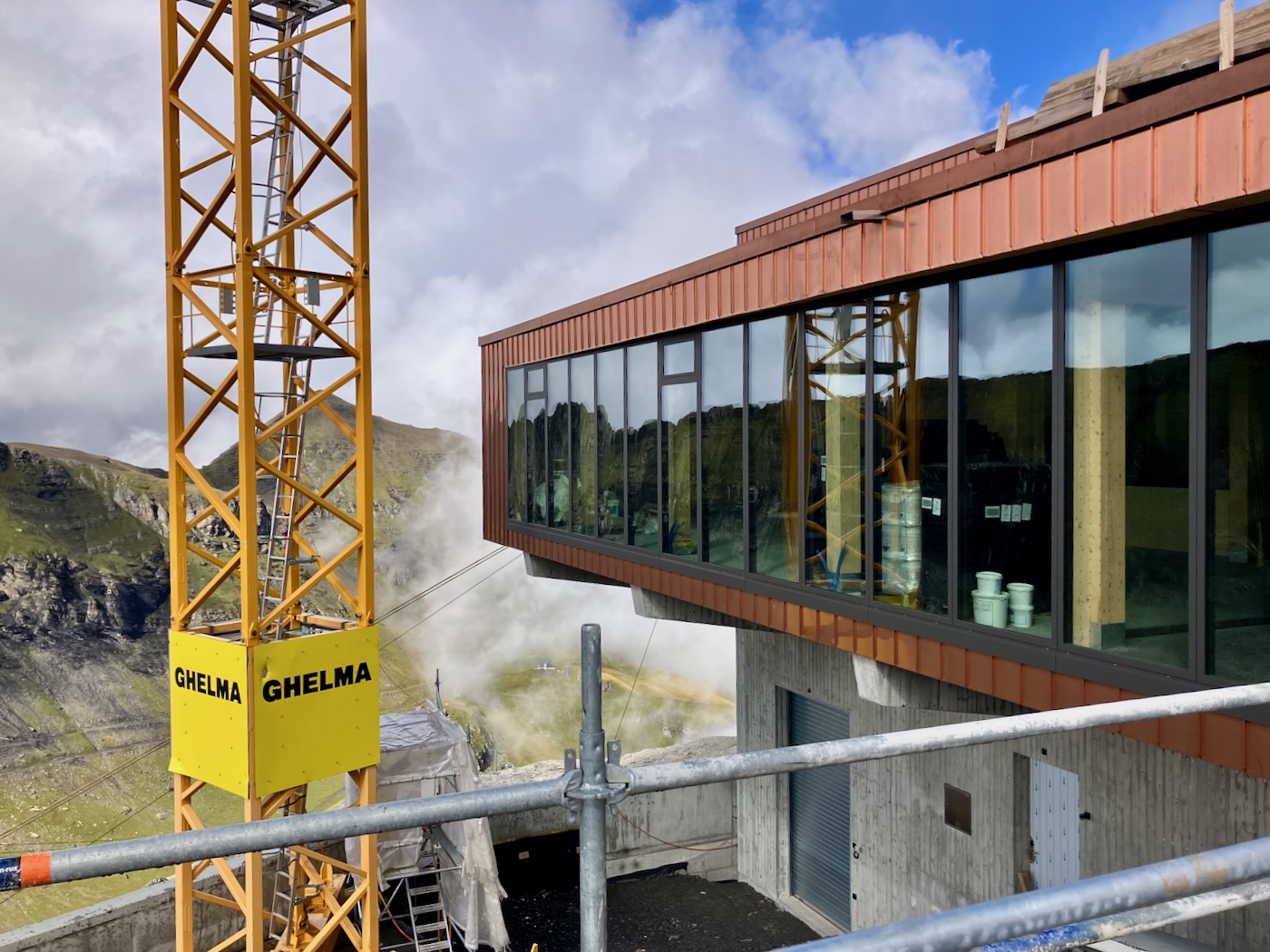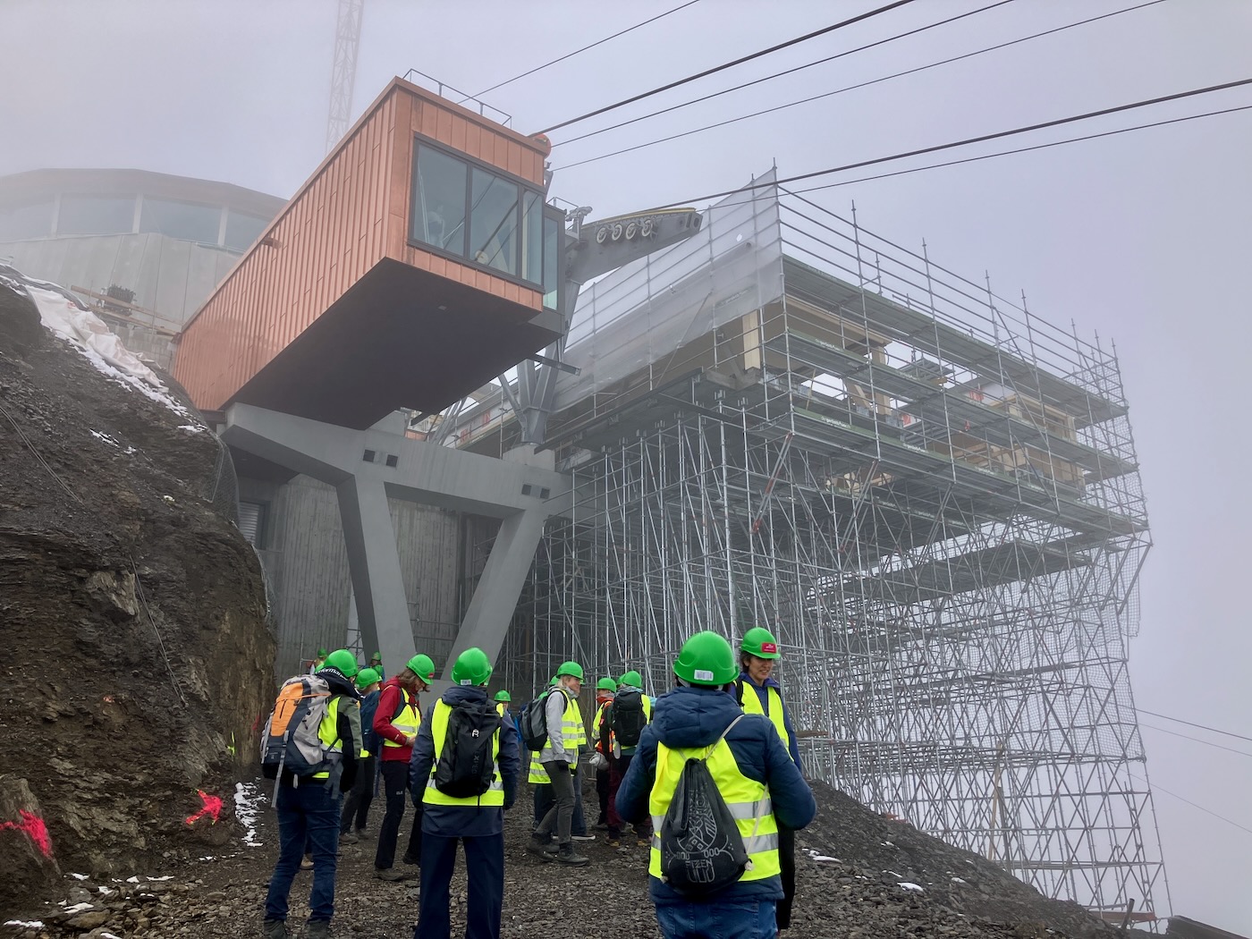 Der Rundgang führte durch die neuen Seilbahnstationen in Stechelberg und Mürren sowie über die verbleibenden Baustellen bis hoch zum Schilthorn.